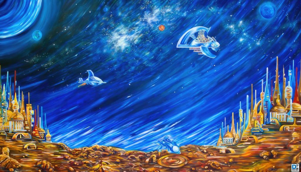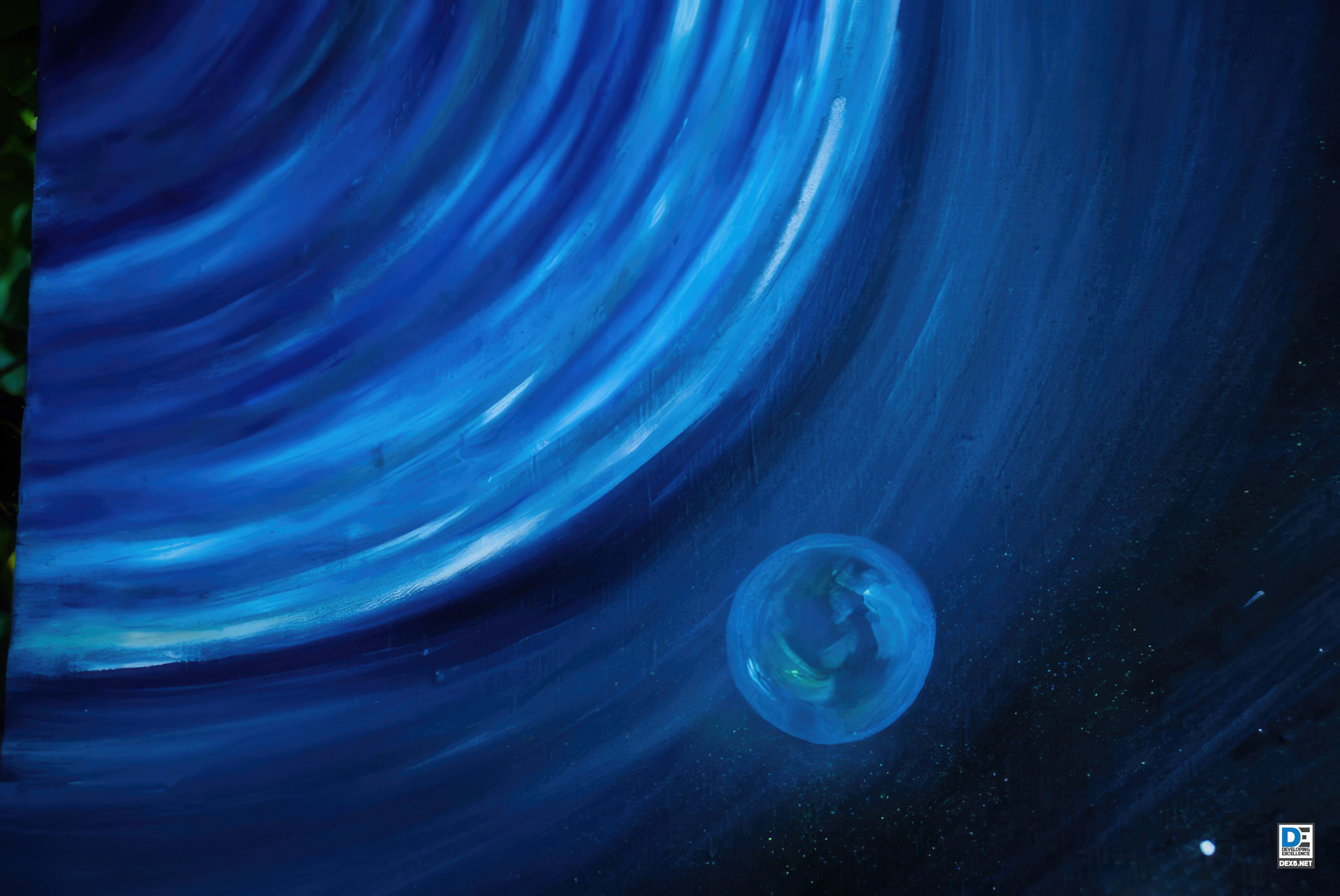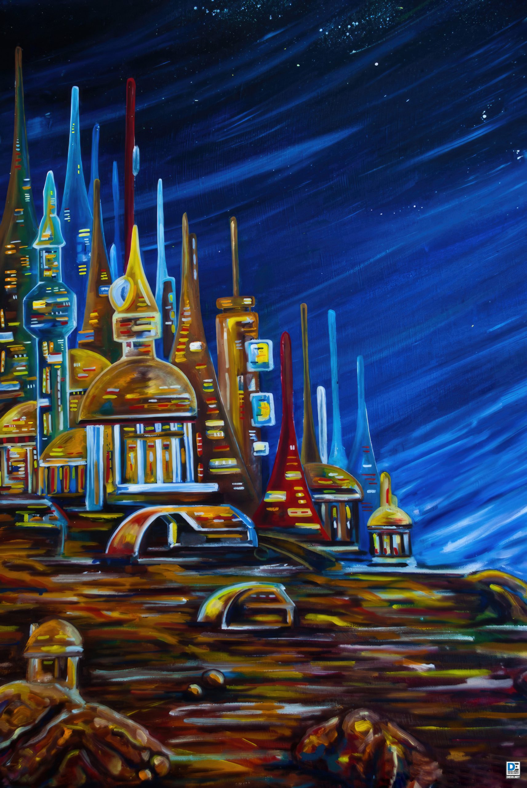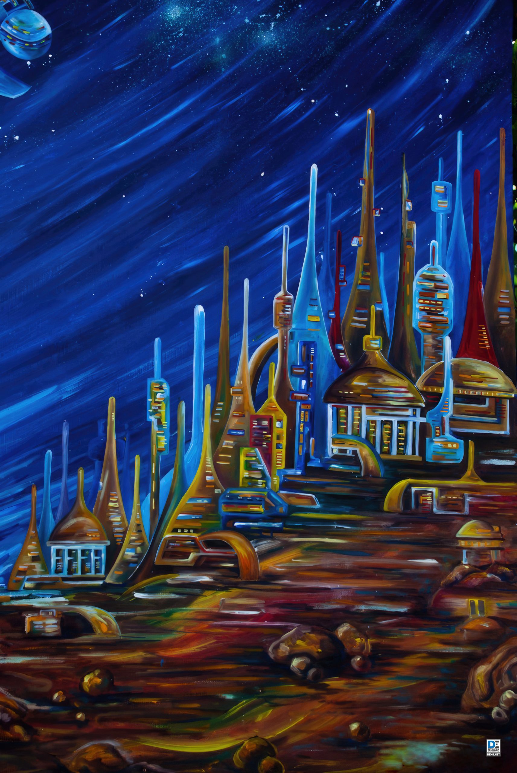 Two Cities in Space was painted in July, outdoors, under a huge apricot tree. It was a distant, calm, and genuinely good time.